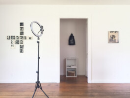 Erica Baum’s enlargements of dog-eared book pages, from the series Stills, are the product of her thumbing through hundreds of books and keeping tabs: presented here are Kent State and The Warren Commission (both 2014). blvxmth's freestanding SS21 (2021)—an iPhone on a tri-pod with a tungsten ring light—takes the home video-chat apparatus and shuts it down. On inspection, the image on the phone’s screen (a mise en abyme portrait of the artist taking a self-portrait) is a printed photograph, glued to and blocking the functionality of the ubiquitous machine. Darya Diamond’s Water Sports (2020), an arrangement of handmade porcelain tiles, is a doubly gridded array: each tile is screen-printed with stills from a self-surveillance video which show the artist, naked and squatting, from multiple angles, engaging with and performing for a john. Ann Weathersby’s boxes hold and frame reworked covers and pages of books from the artist’s adolescence in combination with other materials: leather, pigmented kiln-formed glass, and the brass, wood, and glass the boxes are made of. The saturated emotional affect of the manipulated images and texts is so potent, often pained, that it nearly ruptures the serious, mature materials that encase them. Weathersby’s work here, Memories made themselves with almost architectural order (2018-2019), is cold and warm at once.