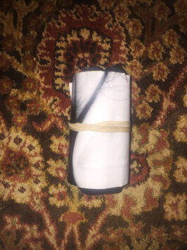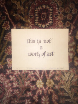 Each artist was invited to contribute 14 artworks, which most everybody did. Some sent less. The artworks were divided up one per bag. Some artists made numbered editions, some gave multiples, some gave variants on a theme. The contents of each bag are different. Nathan and Ryan collected everything in October in Brighton on a windy night in a parking lot and divided the works into the bags along with the sand that blew in from the beach. They taped the bags shut and sent them in a box to F in Houston.